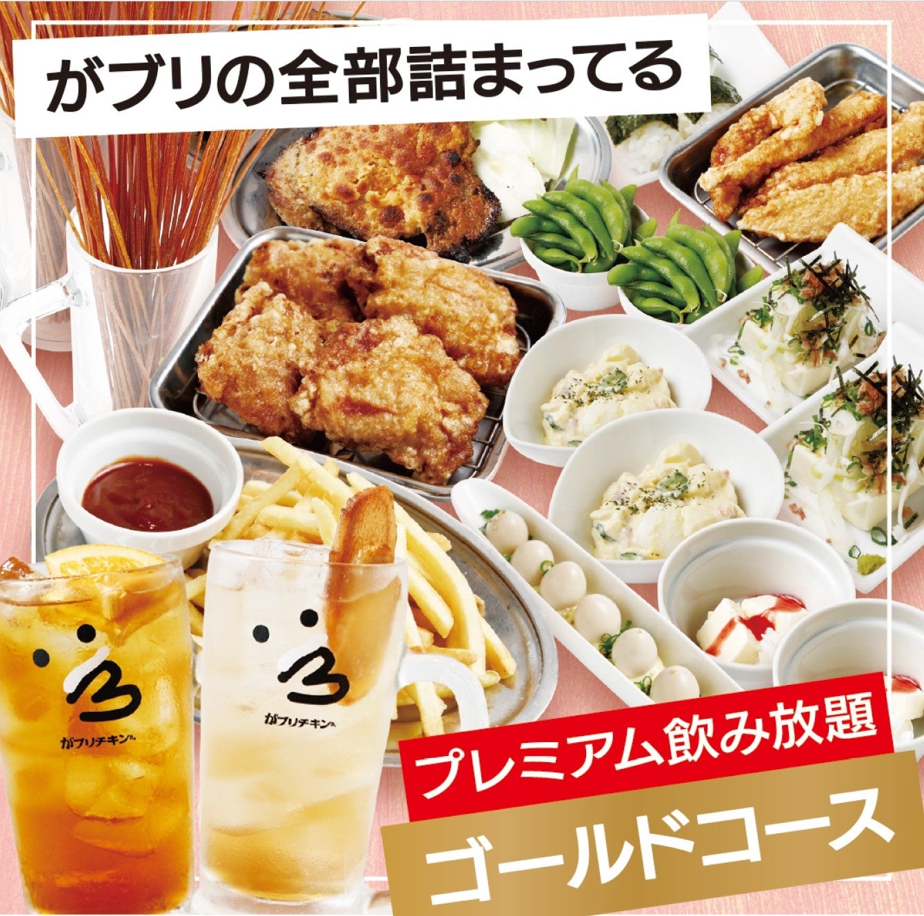 とまらん棒・卵多めのポテトサラダ・クリームチーズやっこ・金賞からあげもも・からあげささみ・骨付鳥 ひな・がブ吉くんのタマゴ・枝豆・フライドポテト・骨付鳥専用おむすび・-4℃のチーズケーキ