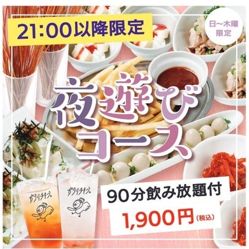 日曜日から木曜日の21時以降限定で、お得に気軽に楽しめるコースです。
