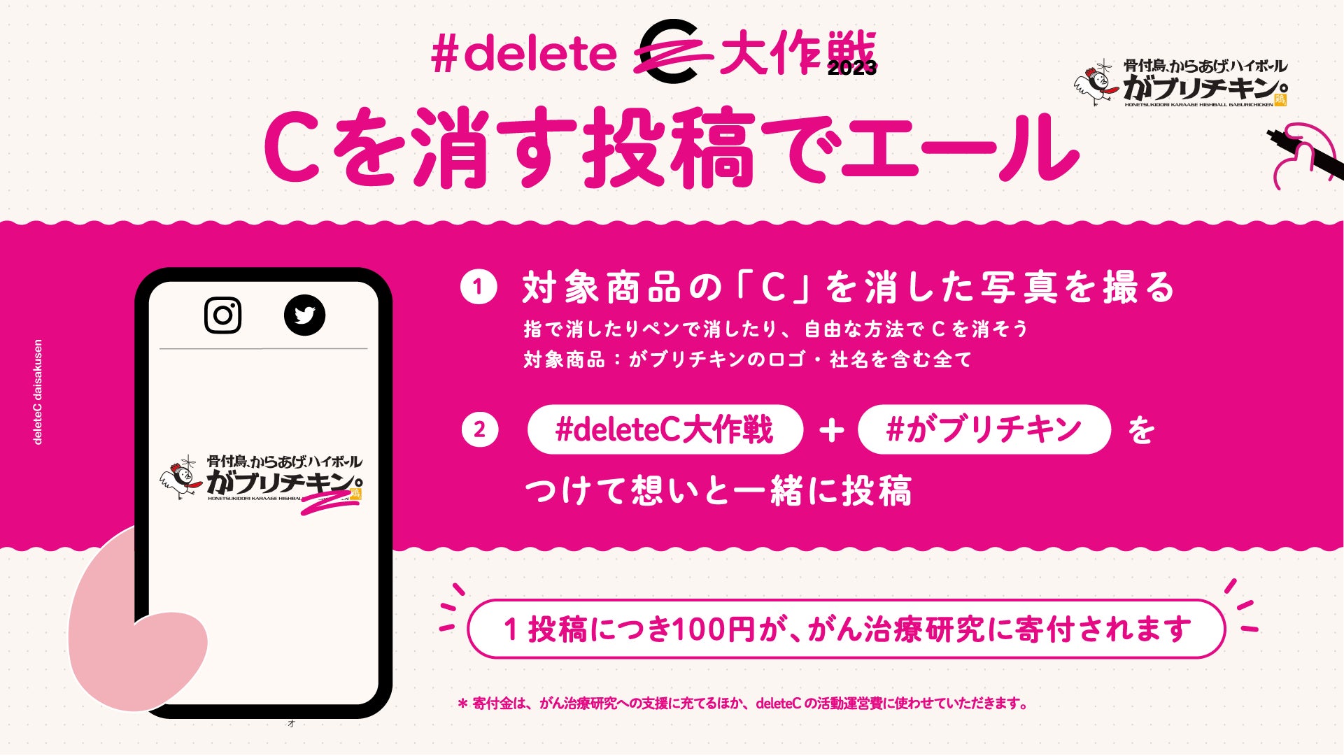 「#deleteC大作戦」と「#がブリチキン」をつけてSNS【X(Twitter)、Instagram】で投稿すると、