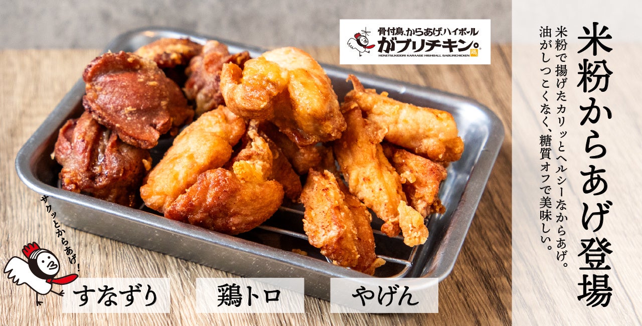 そのうち「やげん」「鶏トロ」「すなずり」の3部位に米粉を使用。従来のからあげよりも衣が軽く、部位によって食感の違いをお楽しみいただけるのが特徴です。