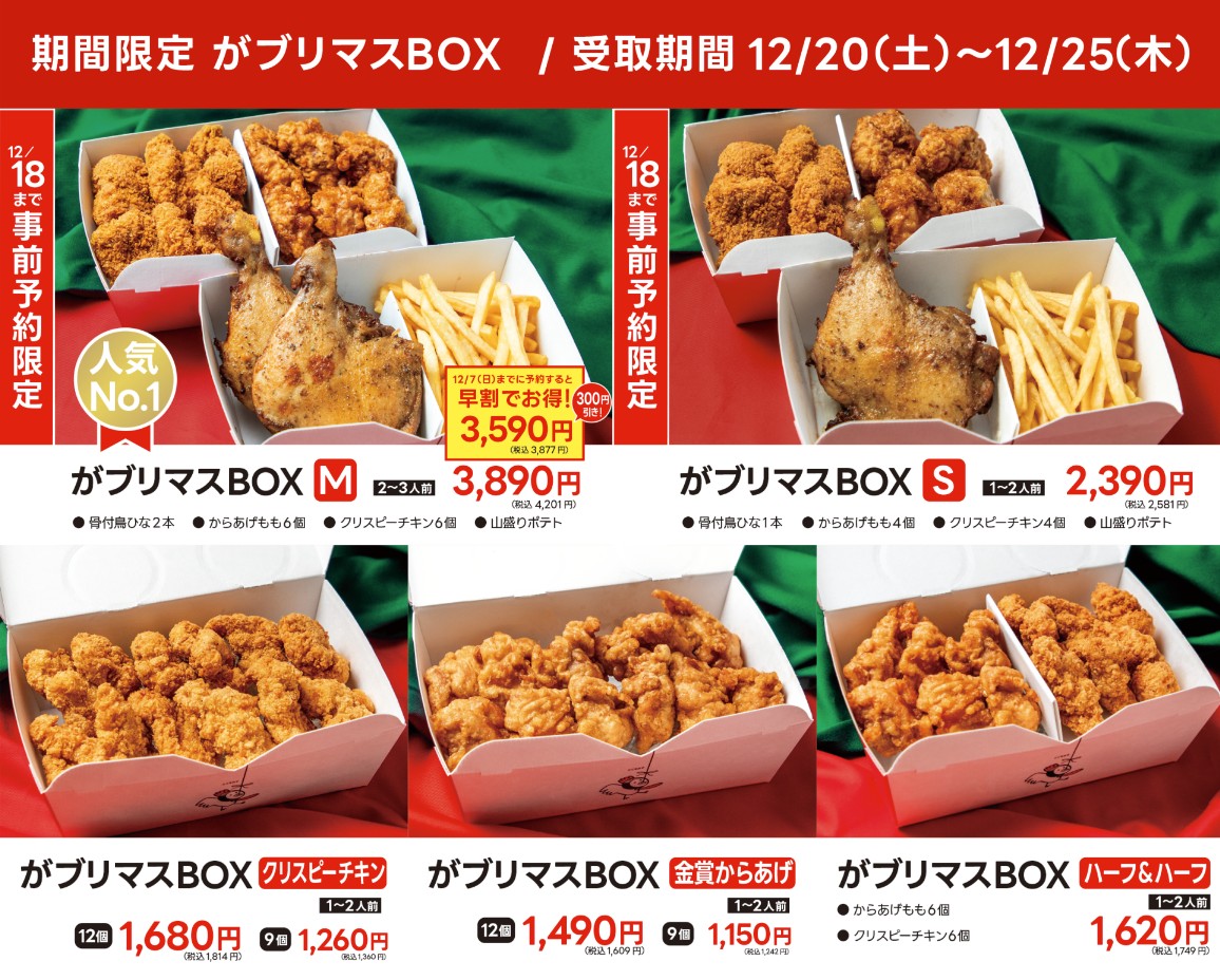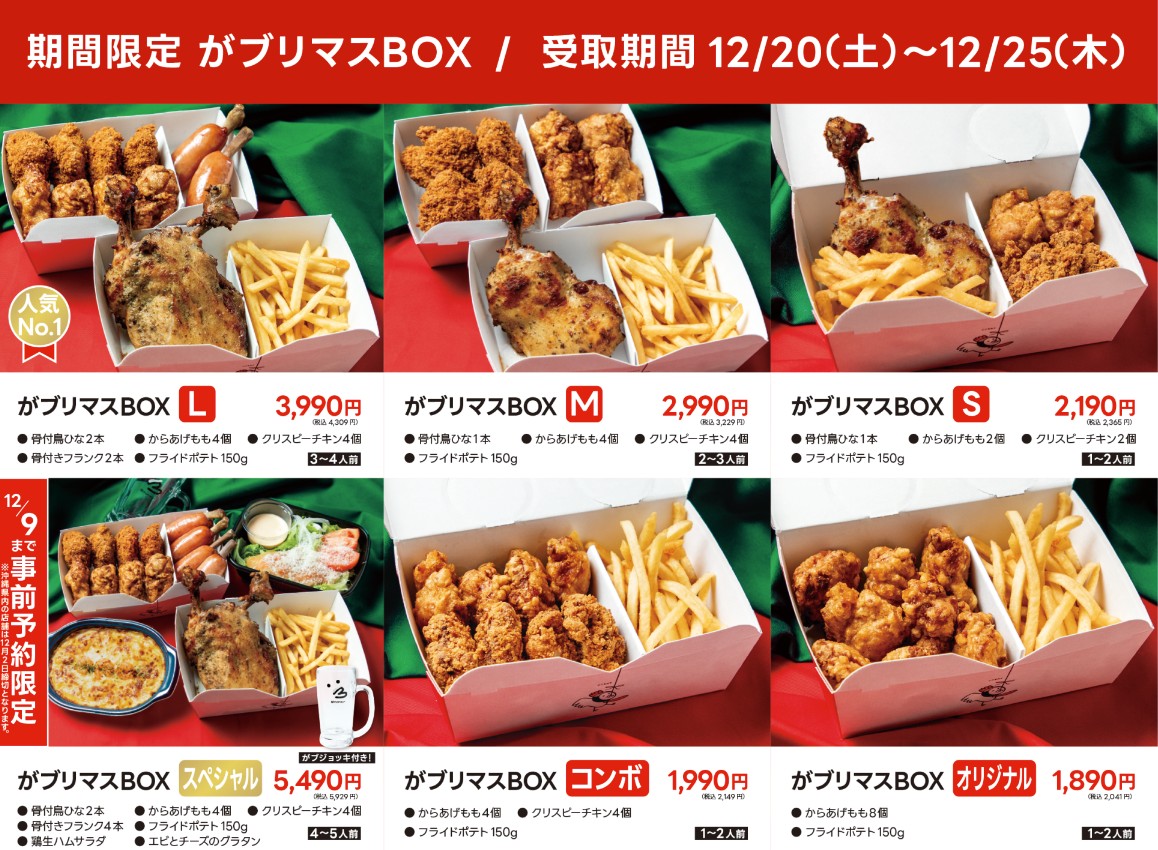 「がブリチキン。」は、毎年大好評のクリスマス限定メニュー「がブリマスBOX」を、