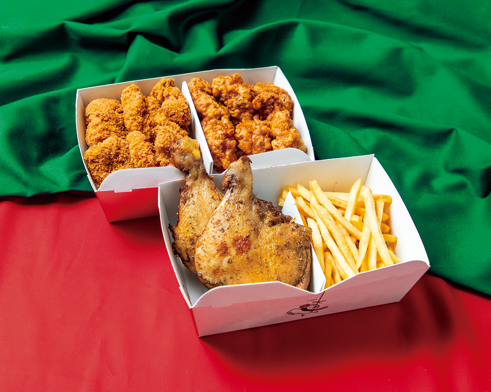 【内容】骨付鳥ひな2本、からあげもも6個、クリスピーチキン6個、山盛りポテト